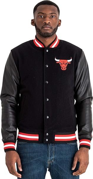 new era chicago bulls nba contrast varsity college jacket black white black size xxl amazon de bekleidung