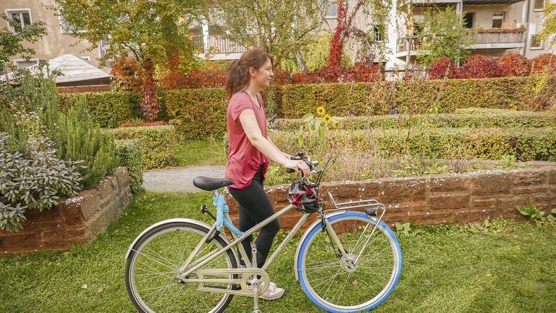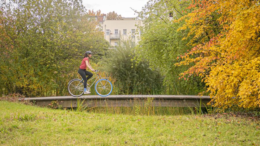 swapfiets auf blauen reifen durch kiel forde fraulein